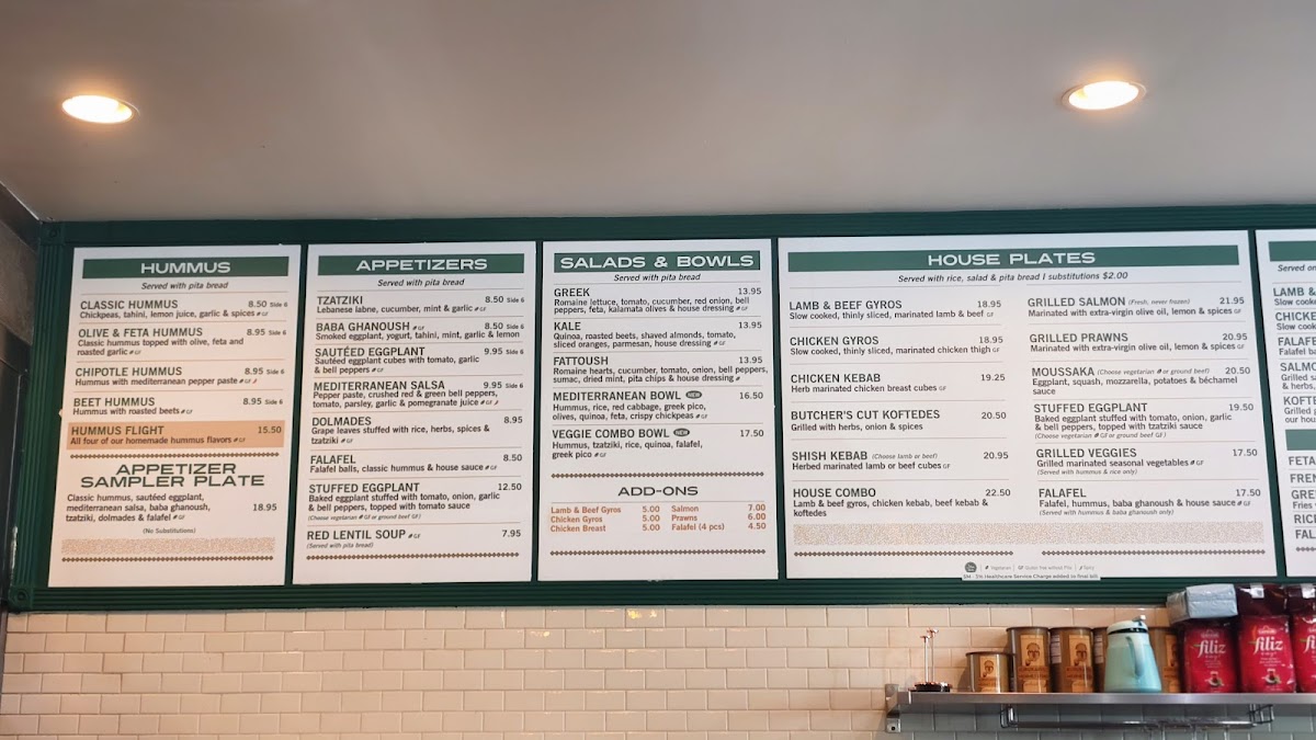 Don't miss Hummus Mediterranean Kitchen's acclaimed salads, like the tantalizing Fattoush Salad or the colorful Greek Salad, both around $45 for a catering half tray, ideal for gatherings or a family feast. The menu is thoughtfully designed with vegetarian options, ensuring everyone can savor the delicious offerings available. And when it's time for dessert, treat yourself to the decadent Chocolate Mousse or the heavenly Baklava for a sweet conclusion to your meal.